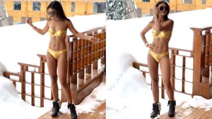 Nazar’s chudail Sreejita De dares to bare at minus 10 degree Celsius, flaunts her sexy mid-riff in metallic gold bikini